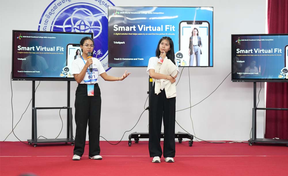 On Wednesday, September 10, 2025, Mr. Houn Dina, representing the Dean of the Faculty of Arts, Humanities, and Languages, led a team of three students from ACLEDA University of Business to compete in the 2025 World Vocational College Skills Competition for the Southeast Asia region. The event was held at the Cambodia-China University of Technology and Science, and it featured more than 60 student teams from various capital and provincial schools across the Southeast Asia region.