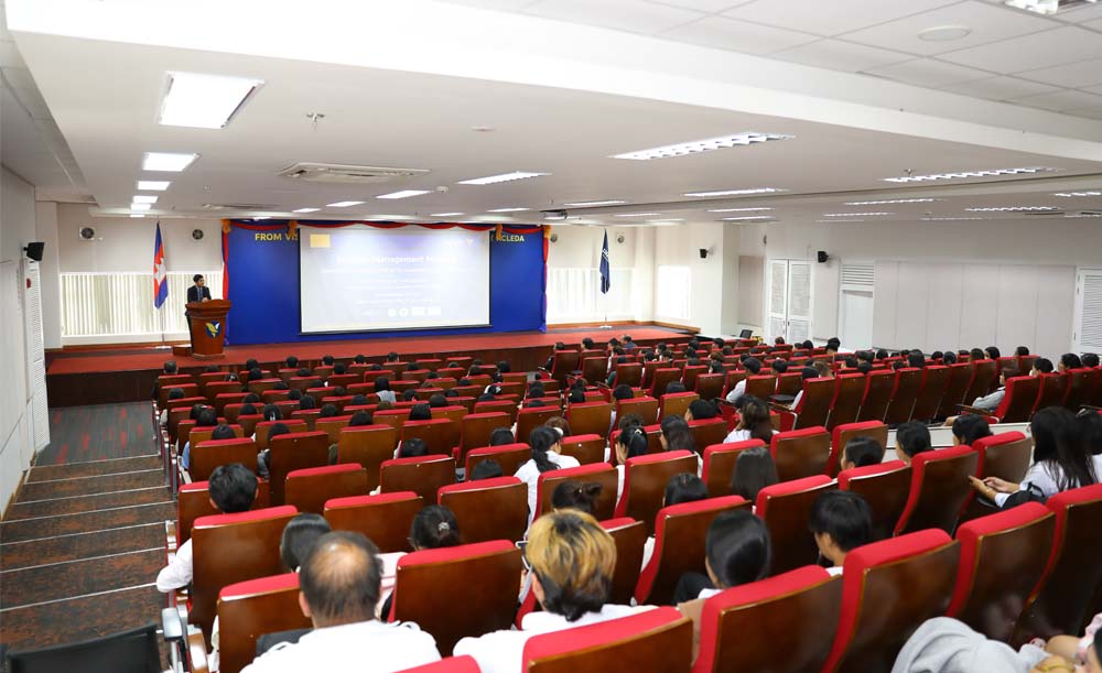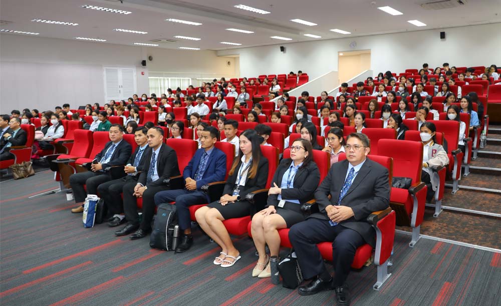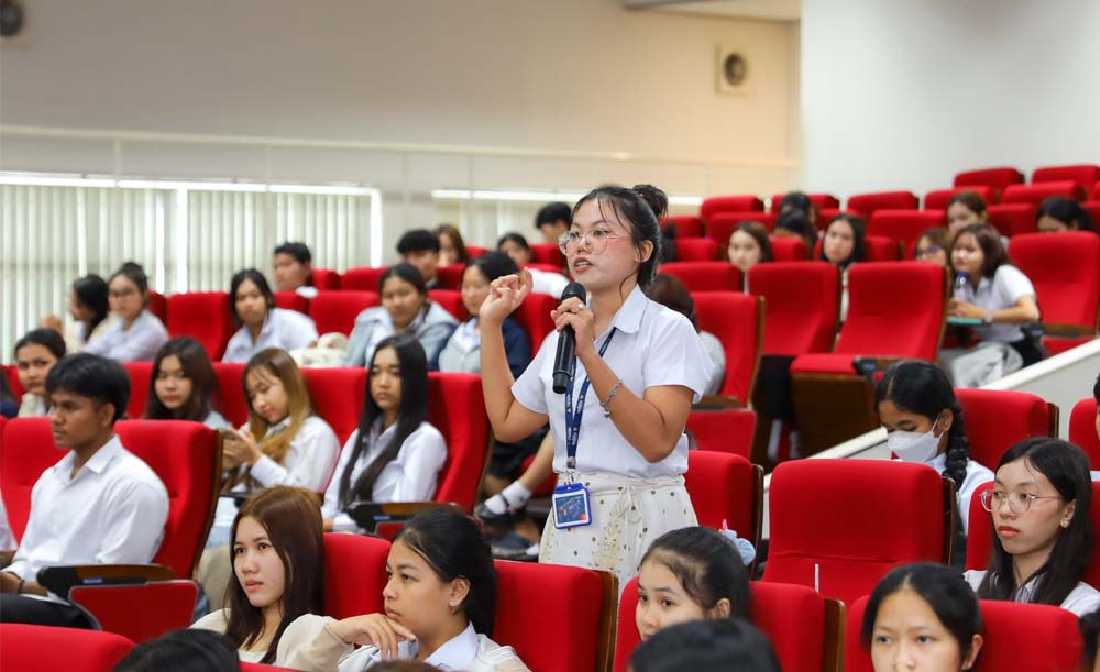 On the afternoon of November 17, 2025, Faculty of Arts, Humanities, and Languages hosted a meeting between the FAL management team and the English for Academic Purposes (EAP) students, approximately 200. This meeting, highly presented by Mr. Thab Chanthorn, the Dean of Faculty of Arts, Humanities, and Languages along with the faculty members, aimed to share the students the effective learning methods and the benefits of foreign languages, particularly English and Chinese, which are the crucial languages of job market demands.