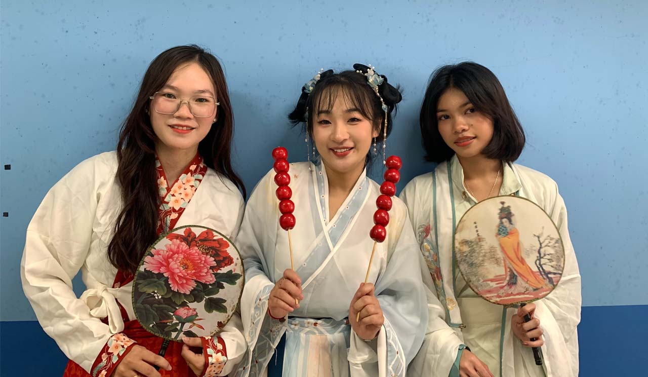 On December 7, 2024, the Chinese teachers of the Faculty of Arts, Humanities, and Languages led their General Chinese Program students to make up and wear traditional Chinese attire in order to gain deeper understanding their Chinese language learning through Chinese culture.