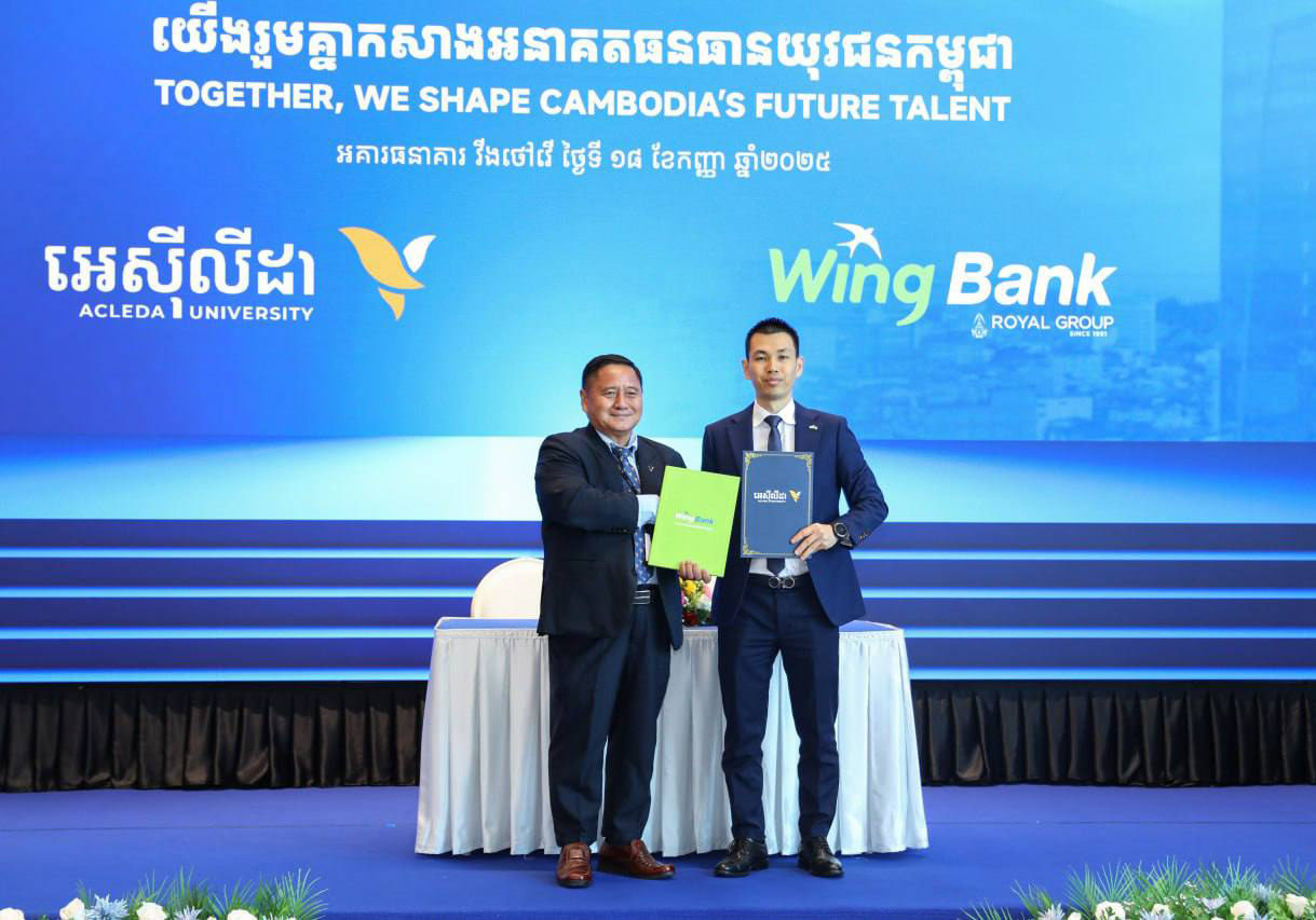 ភ្នំពេញ ថ្ងៃទី១៨ ខែកញ្ញា ឆ្នាំ២០២៥៖ ដើម្បីពង្រឹងគុណភាពធនធានមនុស្ស និងឆ្លើយតបទៅនឹងតម្រូវការទីផ្សារការងារនាពេលបច្ចុប្បន្ន សាកលវិទ្យាល័យ ពាណិជ្ជសាស្ត្រ អេស៊ីលីដា (AUB) និងធនាគារ វីង (ខេមបូឌា) ភីអិលស៊ី បានចុះហត្ថលេខាលើ អនុស្សរណៈនៃការយោគយល់គ្នា (MoU) ជាផ្លូវការ។ កិច្ចសហប្រតិបត្តិការដ៏សំខាន់នេះ មានគោលបំណងលើកកម្ពស់ ការអភិវឌ្ឍជំនាញ និង ការត្រៀមខ្លួនសម្រាប់អាជីពការងារ របស់និស្សិតកម្ពុជា។