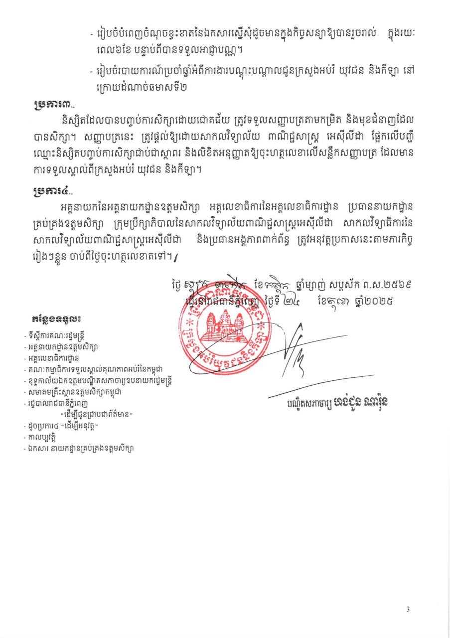 ថ្ងៃទី៣ ខែវិច្ឆិកា ឆ្នាំ២០២៥