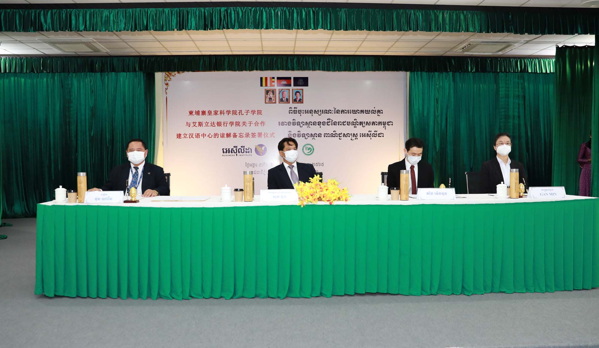 On January 11, 2022, ACLEDA University of Business signed a memorandum of understanding with the Confucius Institute of the Royal Academy of Cambodia on cooperation and support for Chinese language training services.