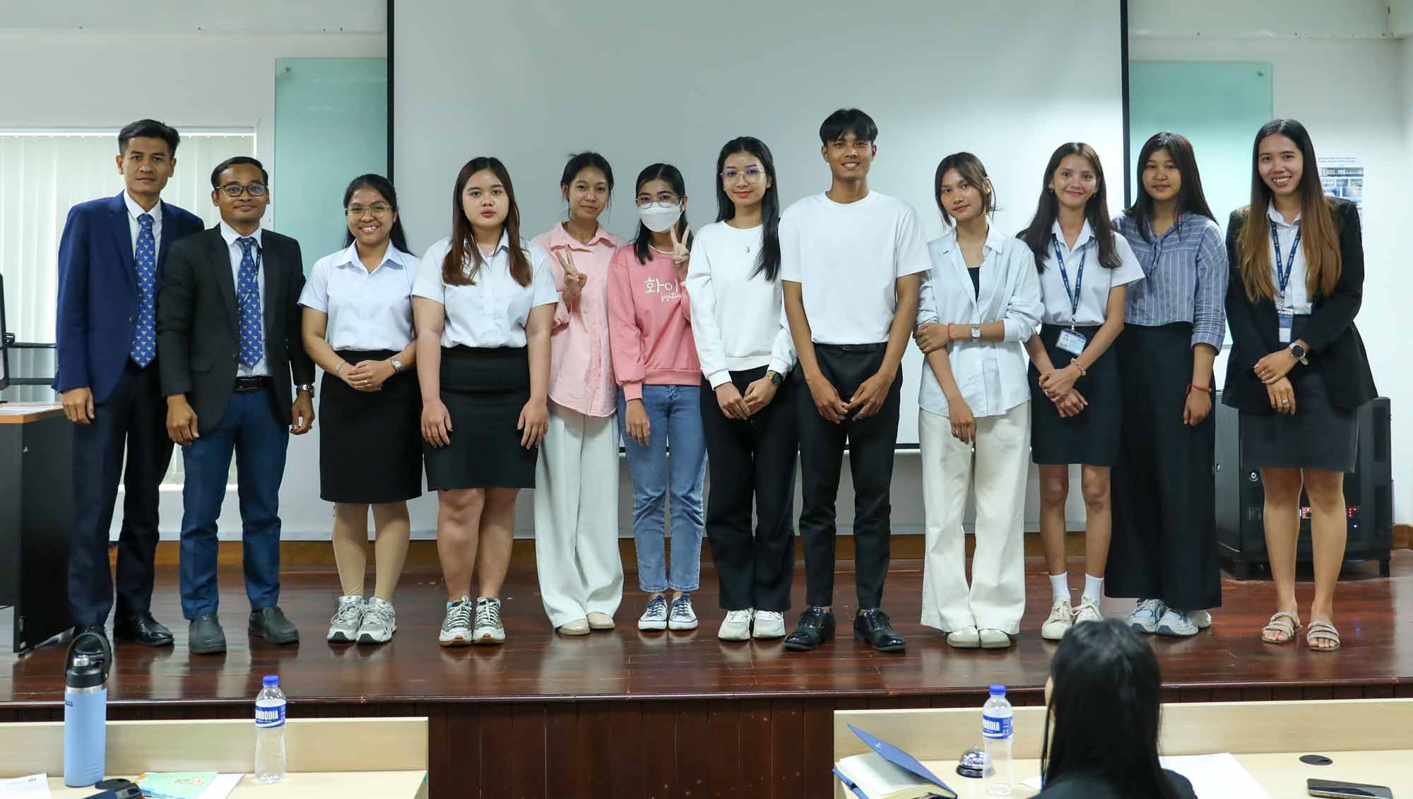 Mr. HOUN Dina, Manager of Foreign Language Coordination Unit and a representative of Mr. Thab Chanthorn, Dean of Faculty of Arts, Humanities, and Languages, officially opened the competition. Especially, he inspired all contestants to perform to the best of their abilities and reminded them that no matter what the result would be acquired, the experience gained would be invaluable for personal growth and for honing their skills in future competitions.